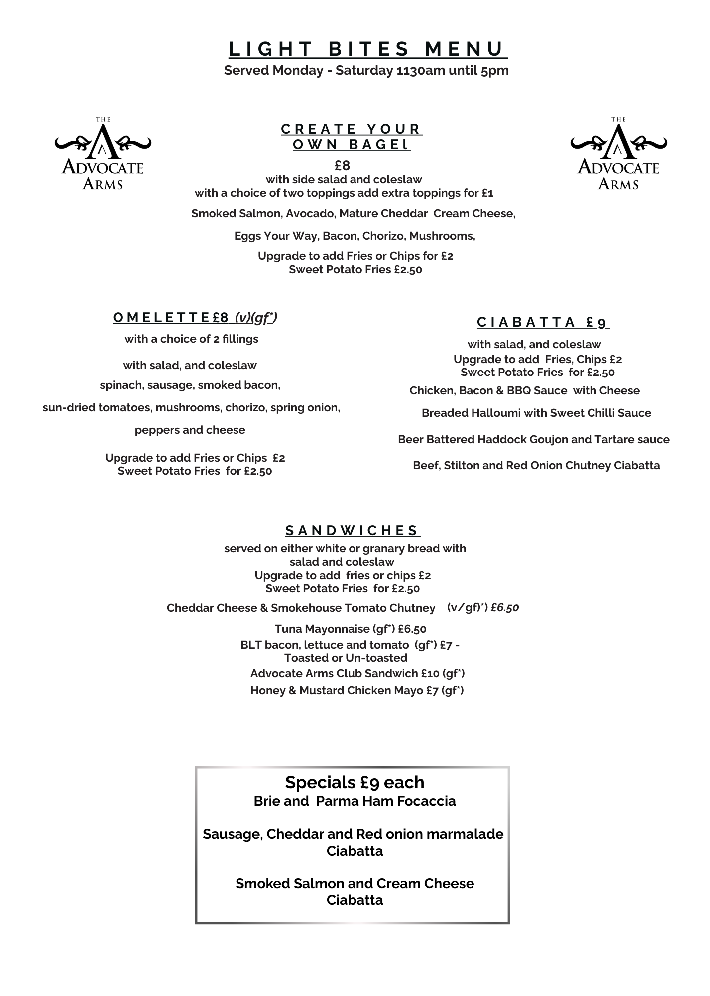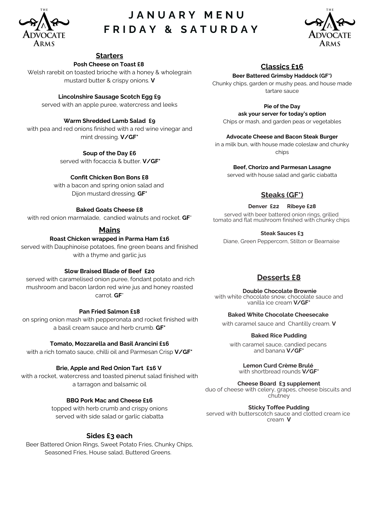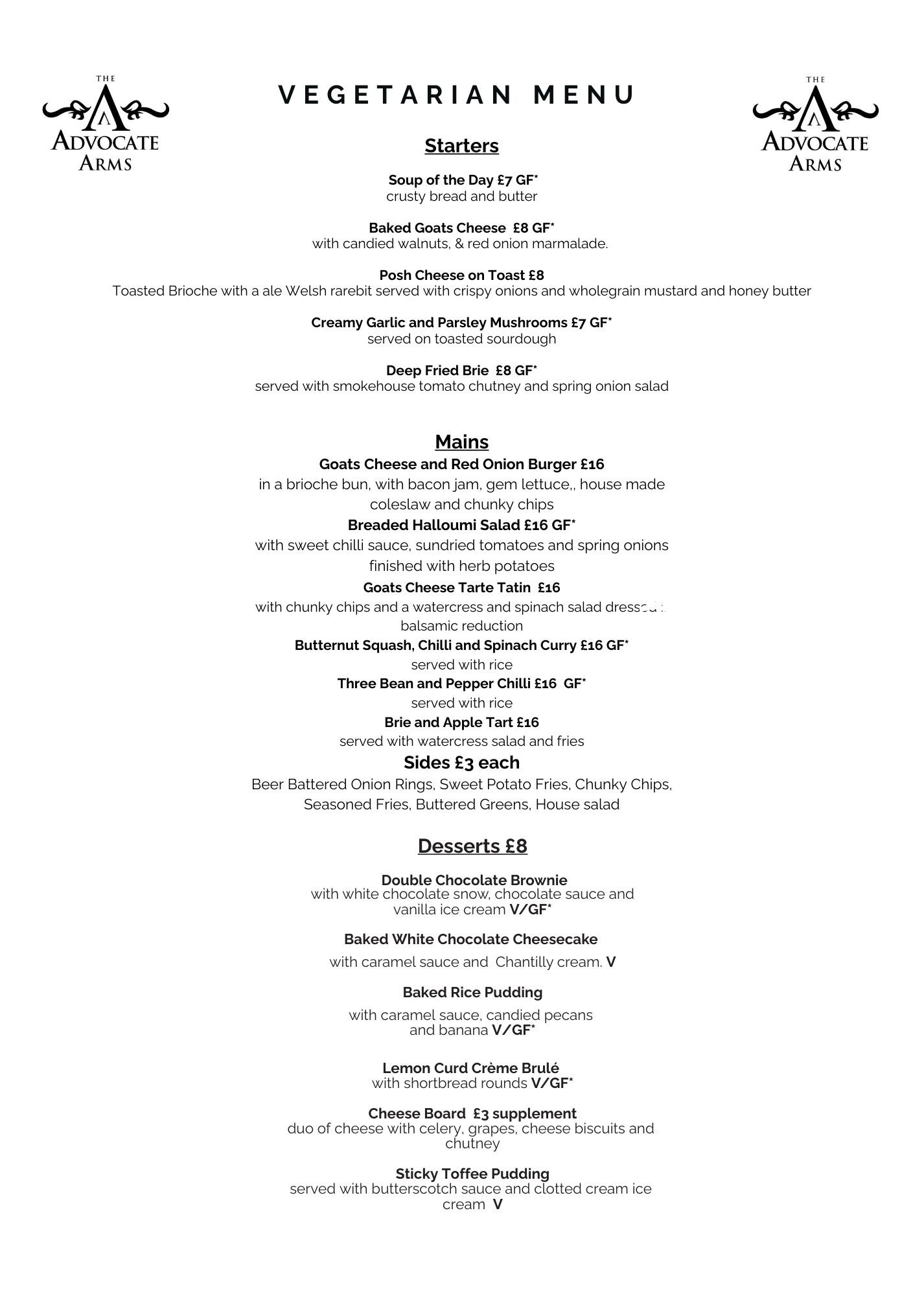 Please use the form below to reserve a table at the Advocate Arms